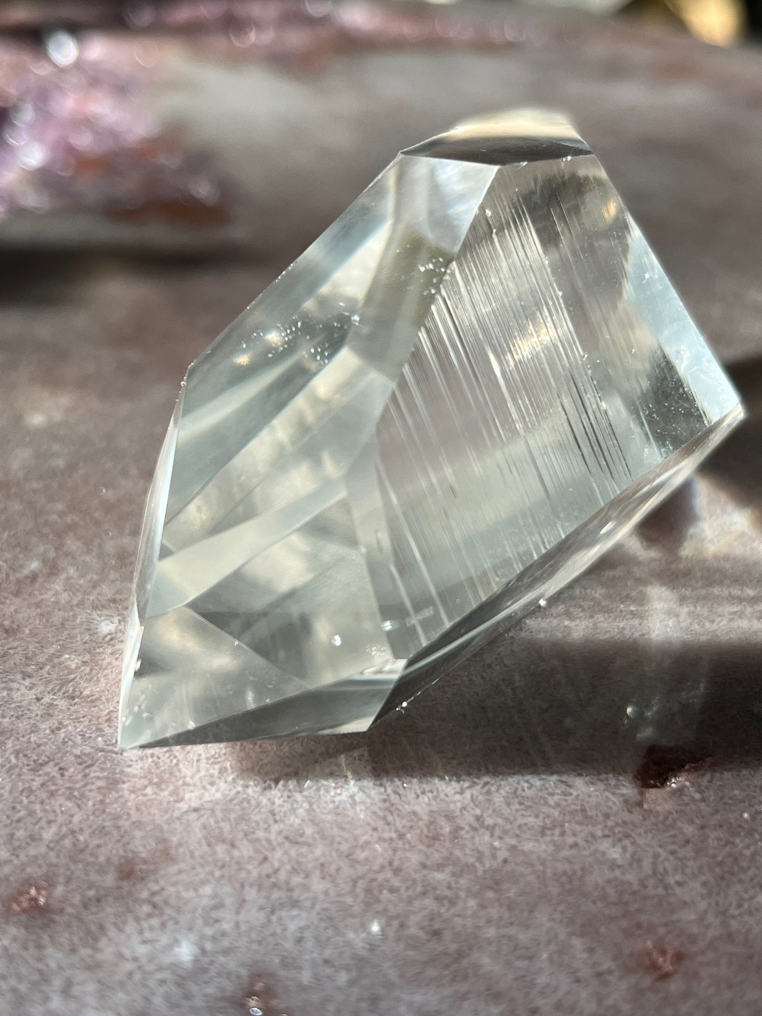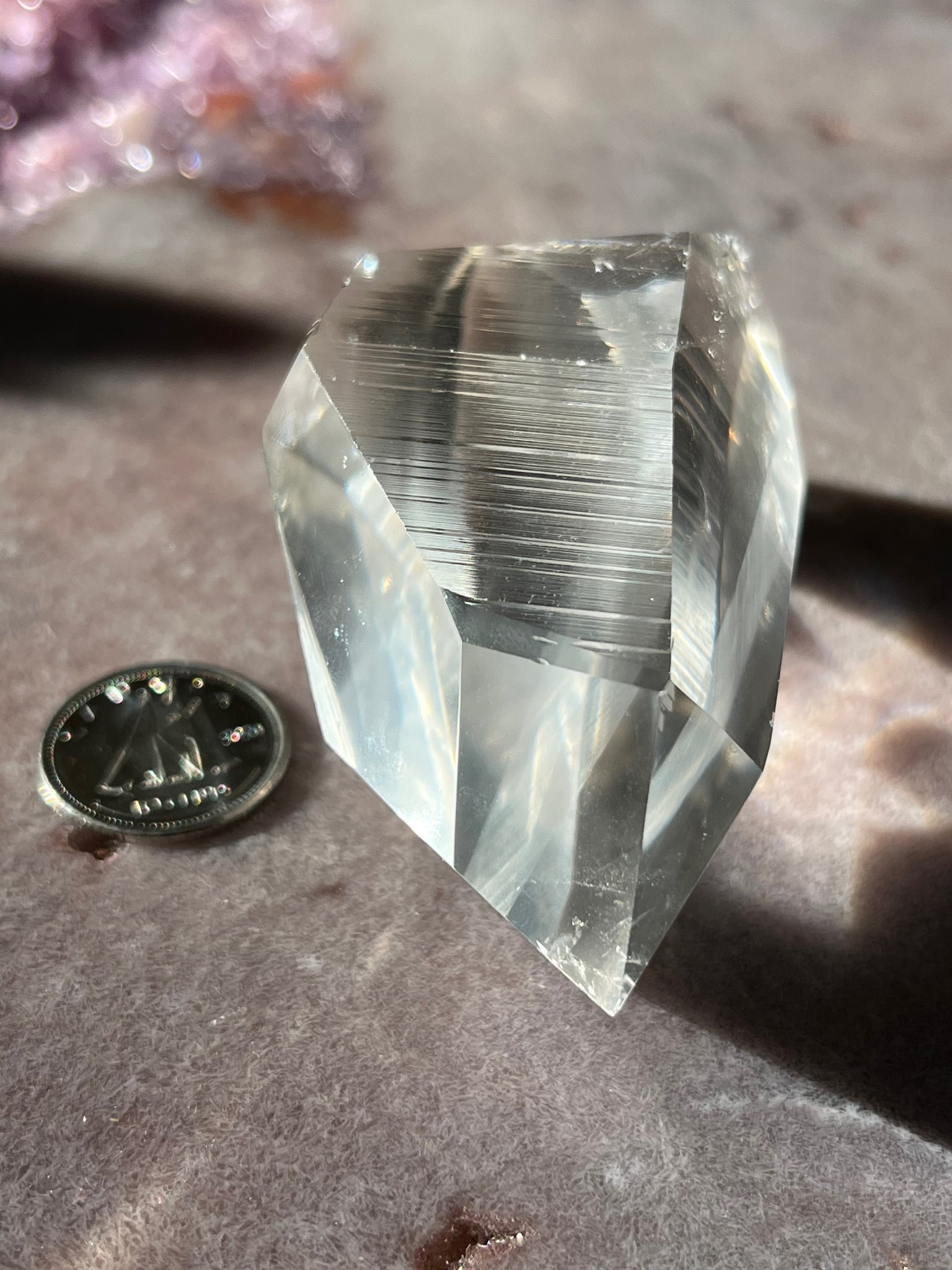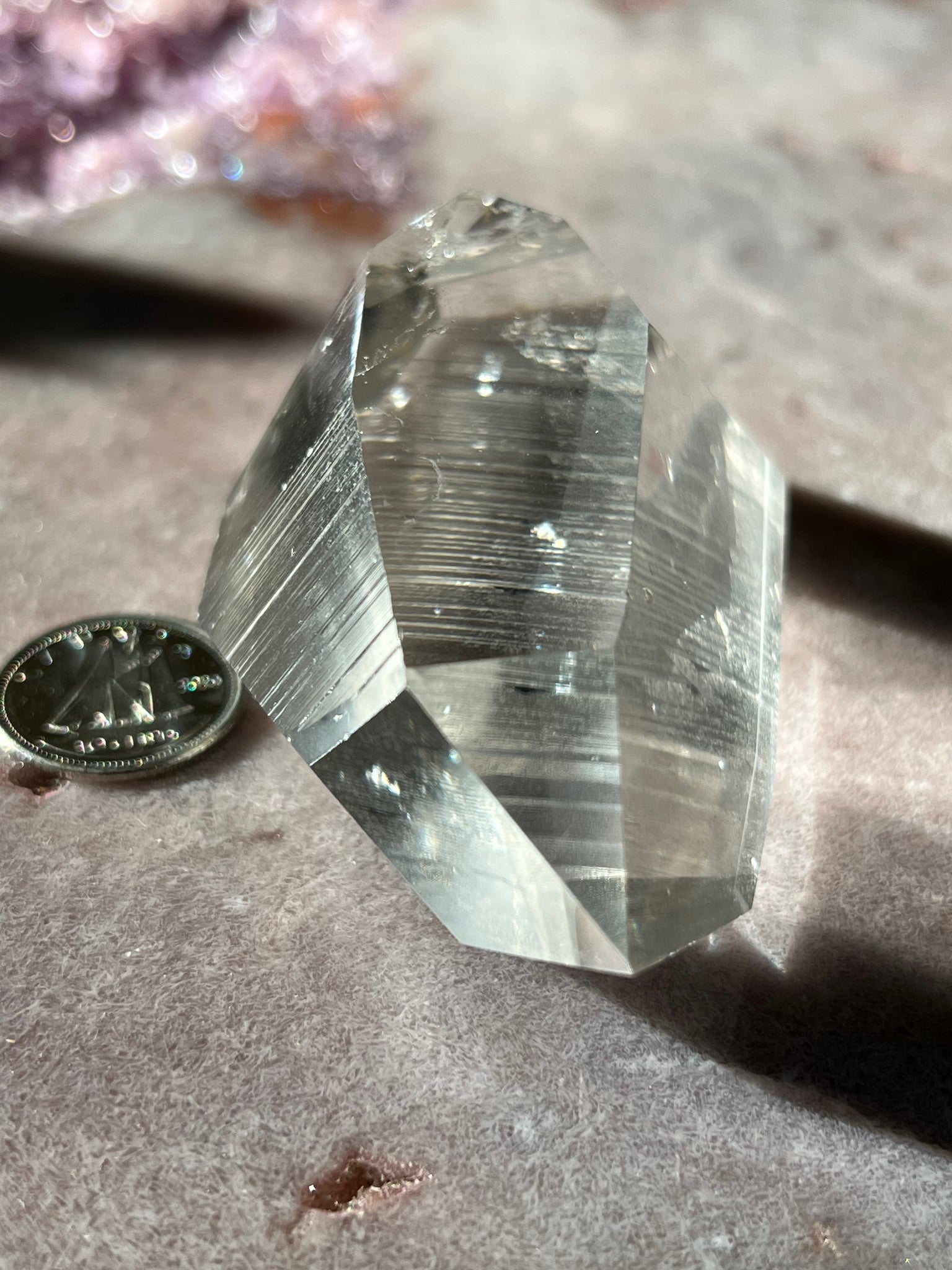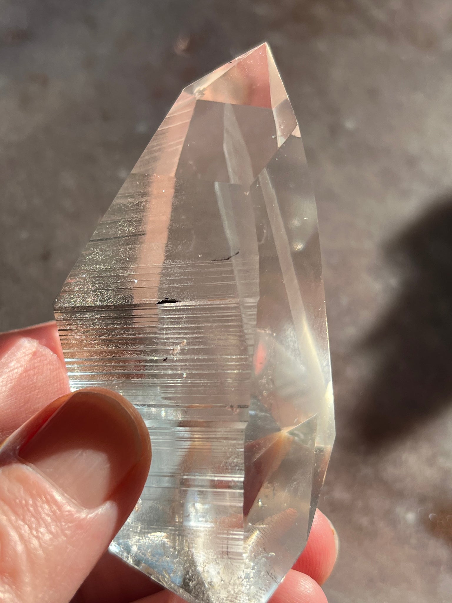 Partly polished Lemurian quartz with phantom and natural lines from Brazil