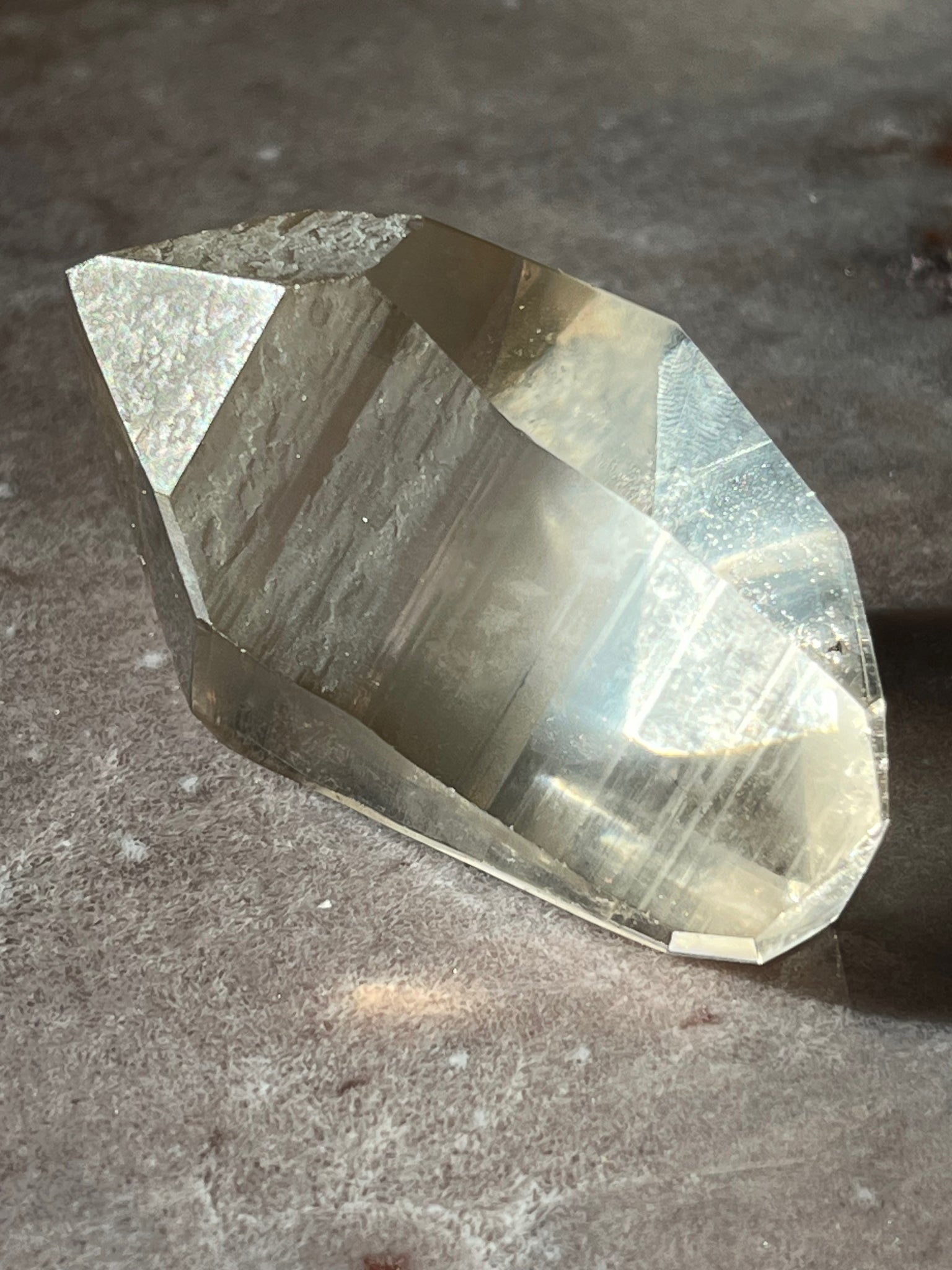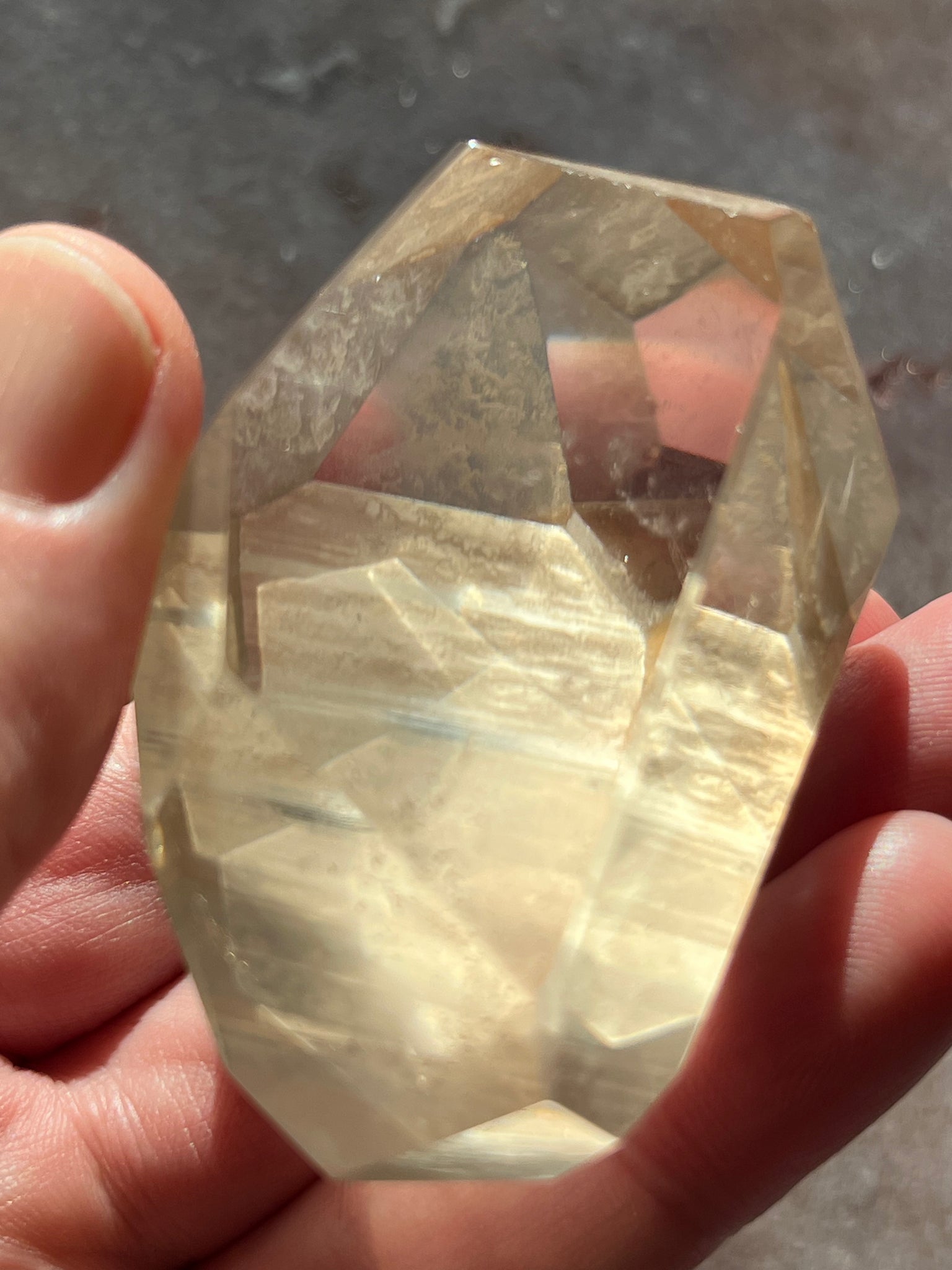 partly polished smokey lemurian quartz from Brazil with natural lines