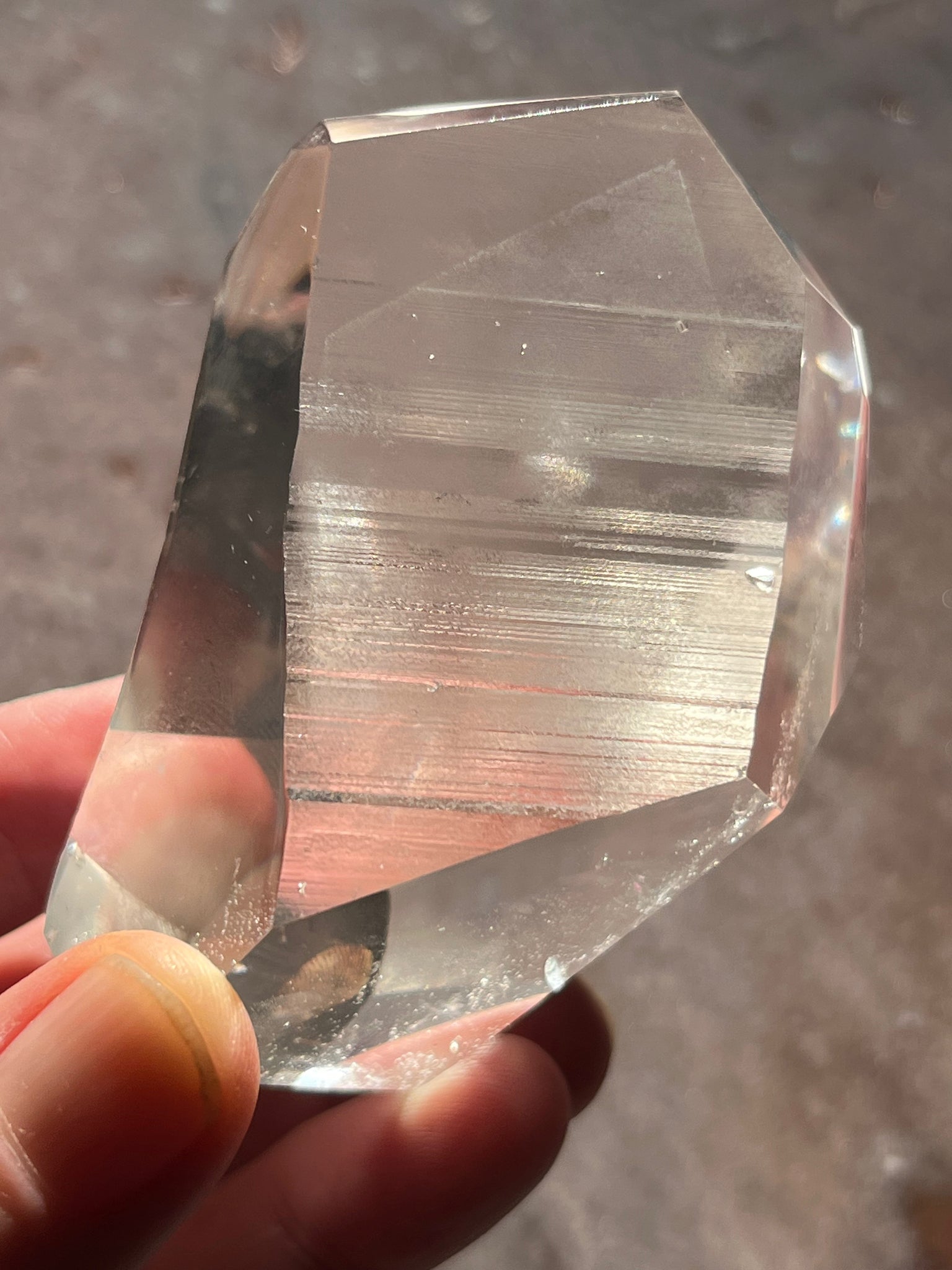 Water clear partly polished Lemurian quartz from Columbia with Natural lines