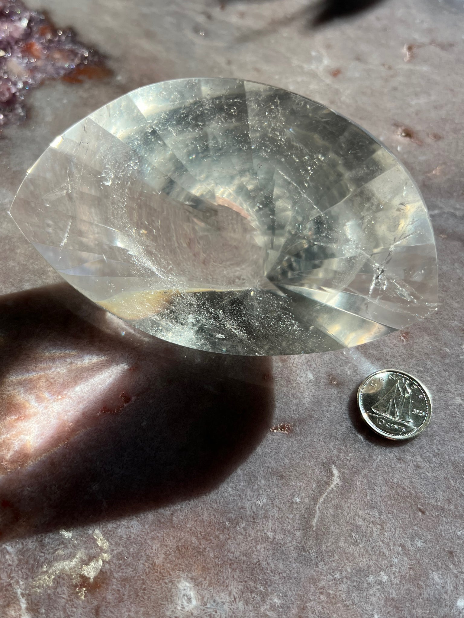 AAA Clear lemurian quartz carved into a double spiral portal